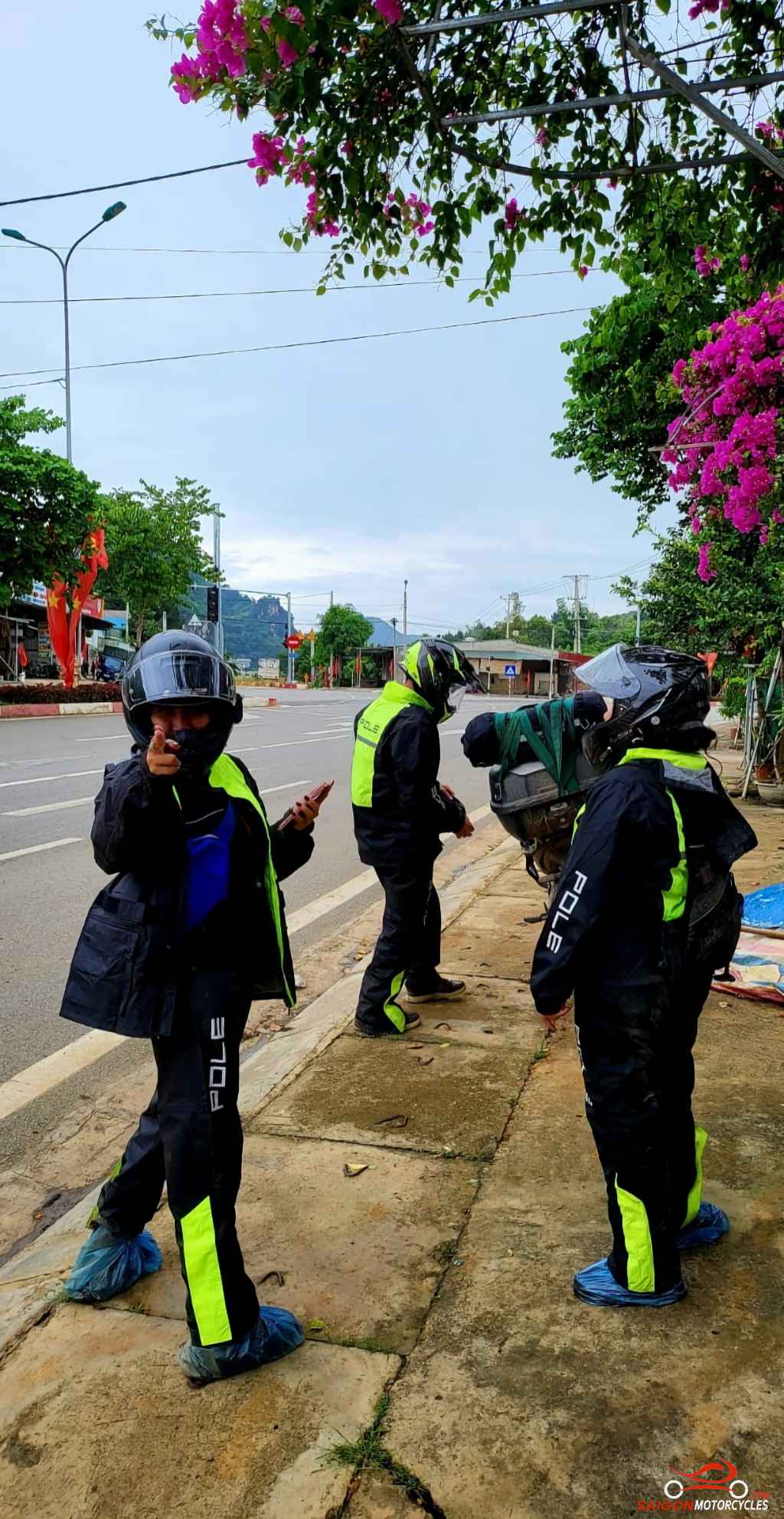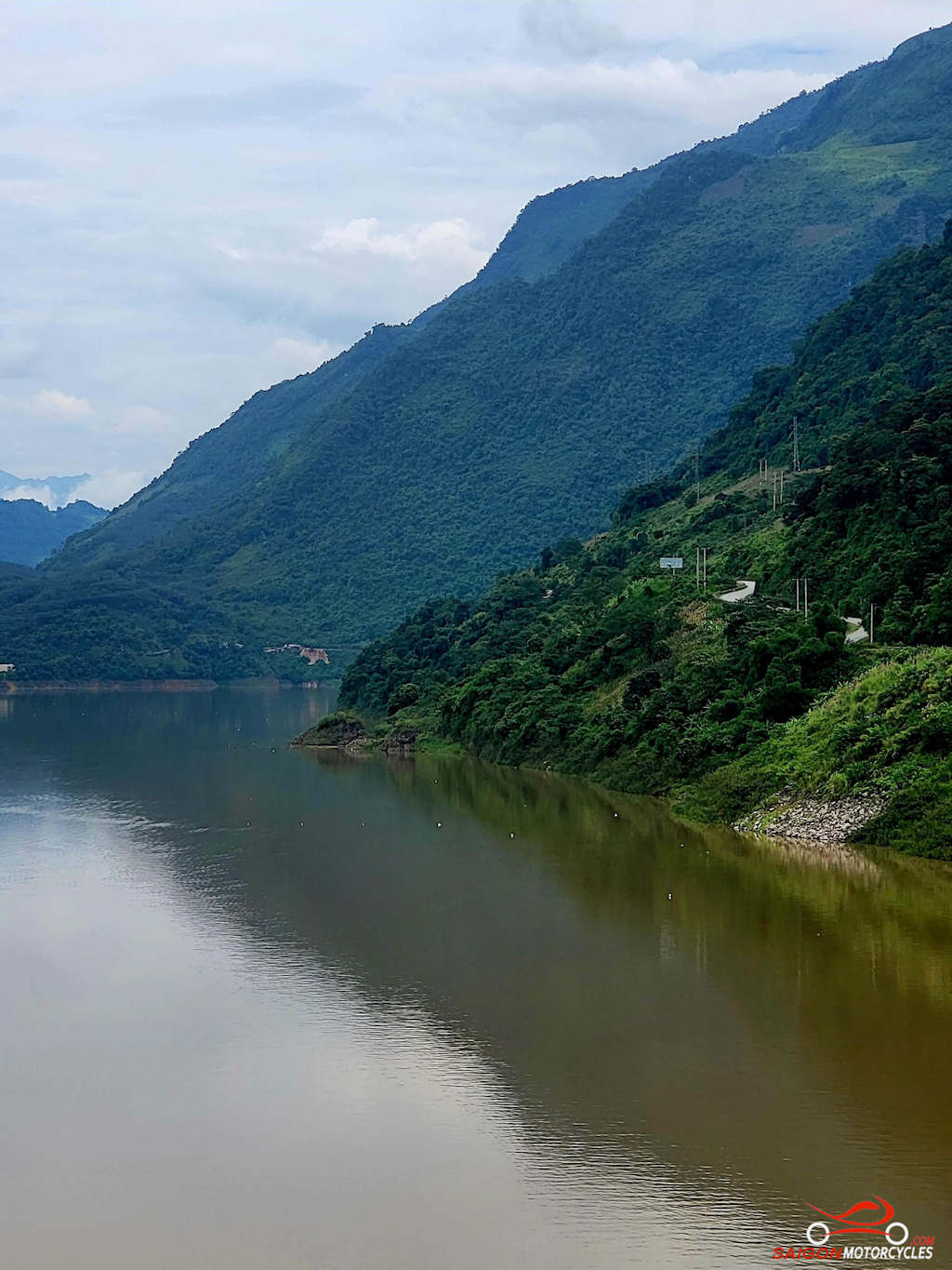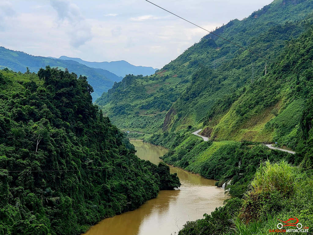 Then rather than the main road we wind along the river on a great road to meet the main arterial to Son La for lunch. Got a bit chilly last time through there so kitted up!