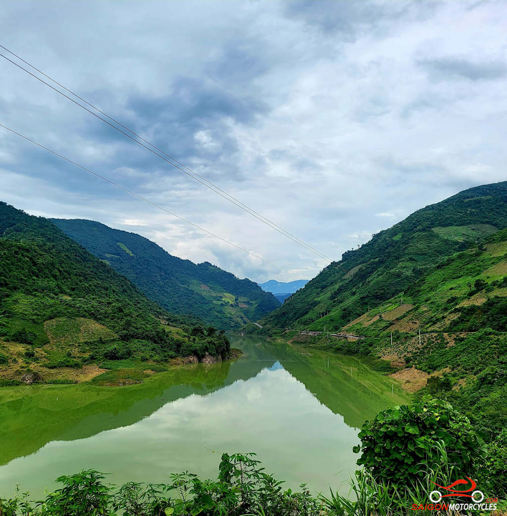Later in the morning you’ll encounter the Da River for the first time. As you enter the lakes area the beauty takes another twist. The riding around this lakes area very special. More brilliant drone country.