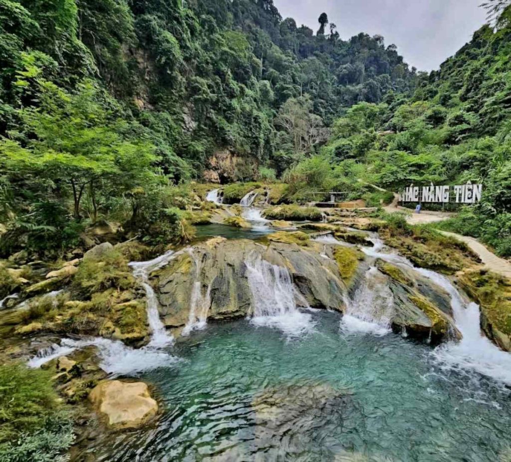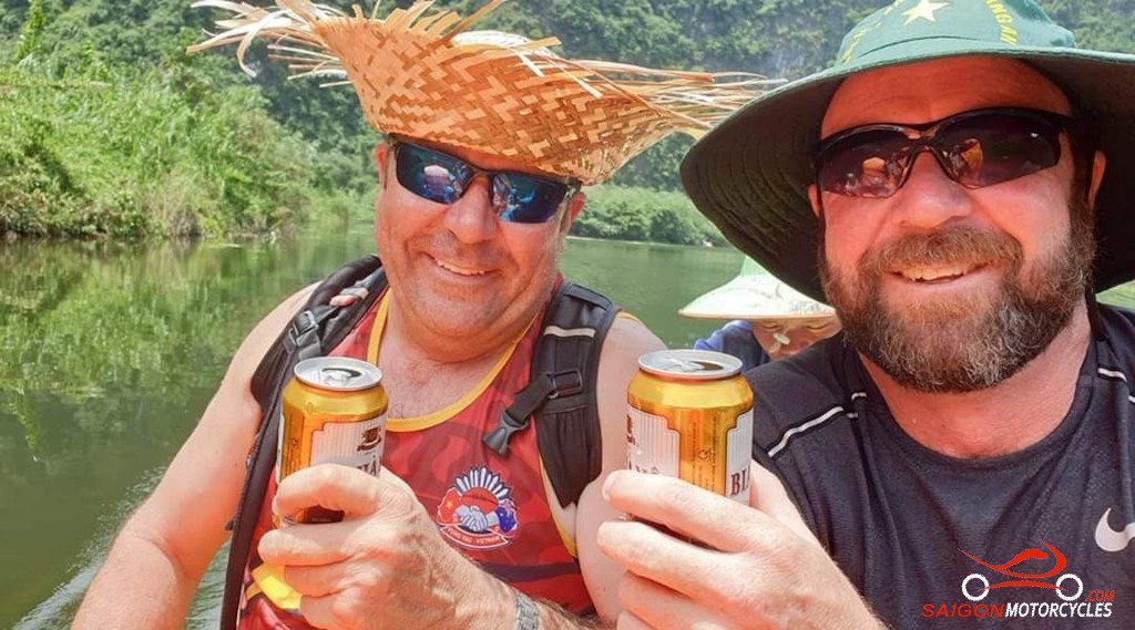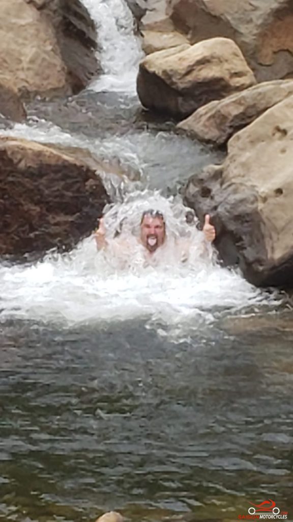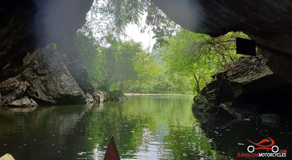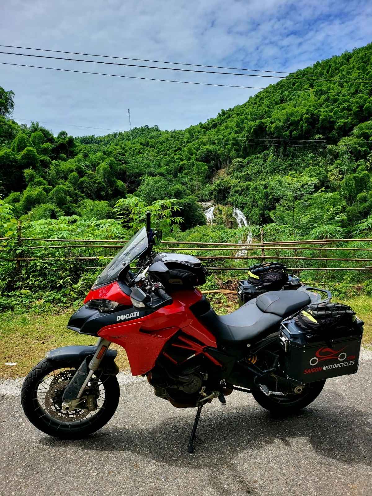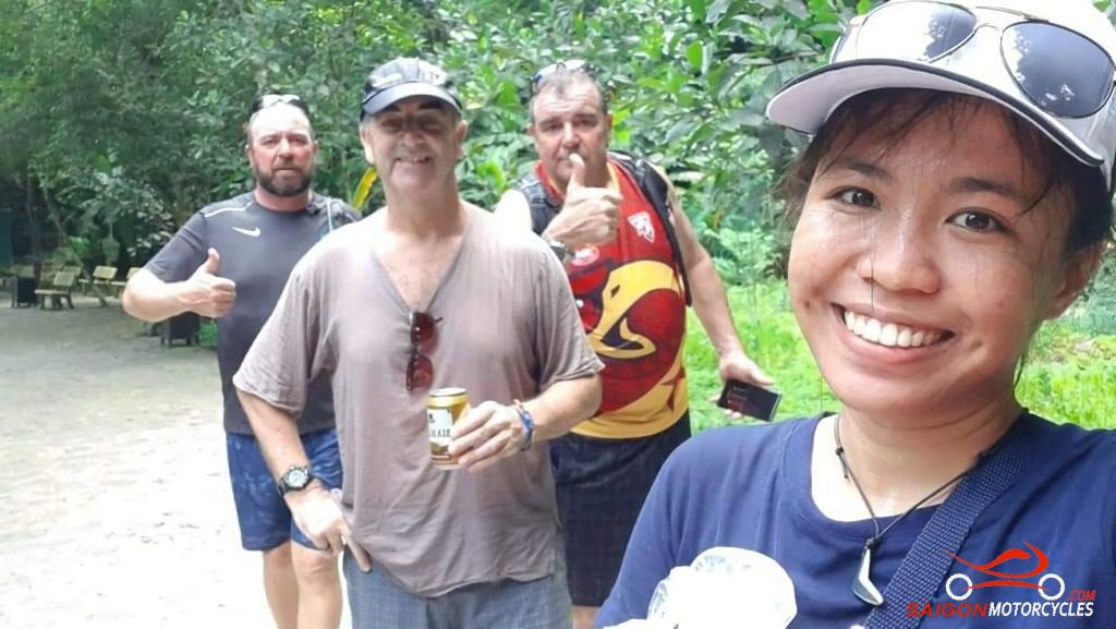 The morning ride is a pleasant one following the Hoang Long and Boi River systems to Uncle Ho’s Road. Shortly after crossing provinces you turn right and follow the River to this awesome Waterfall.