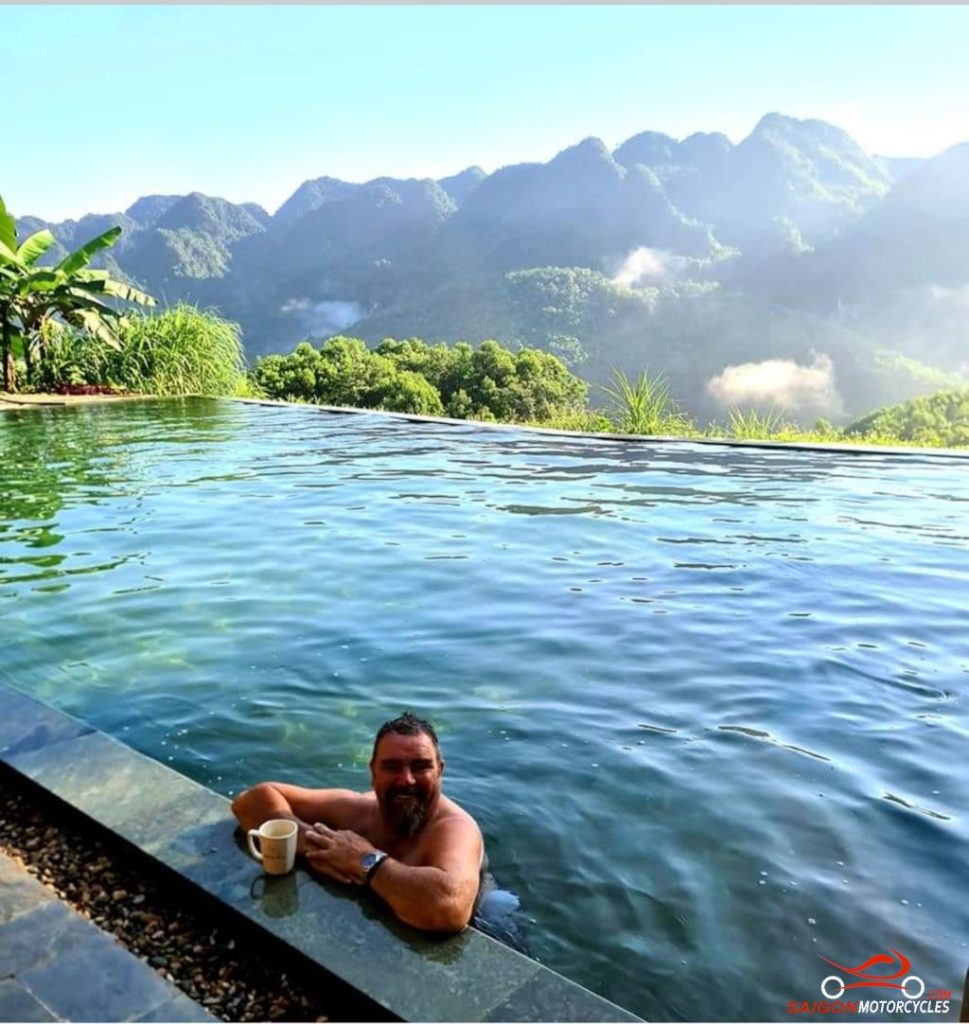 Tam Coc Garden is perfectly located to enjoy the dawn with a morning walk or ride. The walk out the back has a cemetery and some beautiful mountains perfect to throw a drone up. The dawn over the rice fields pretty special.