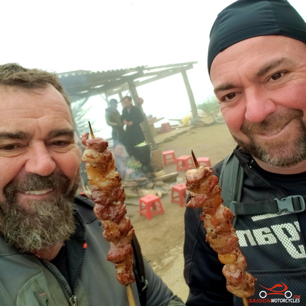 No shortage of billy coffee or tea and these delicious pork skewers straight off the coals. A breakfast among many other experiences that makes this one of my favourite places in Vietnam.